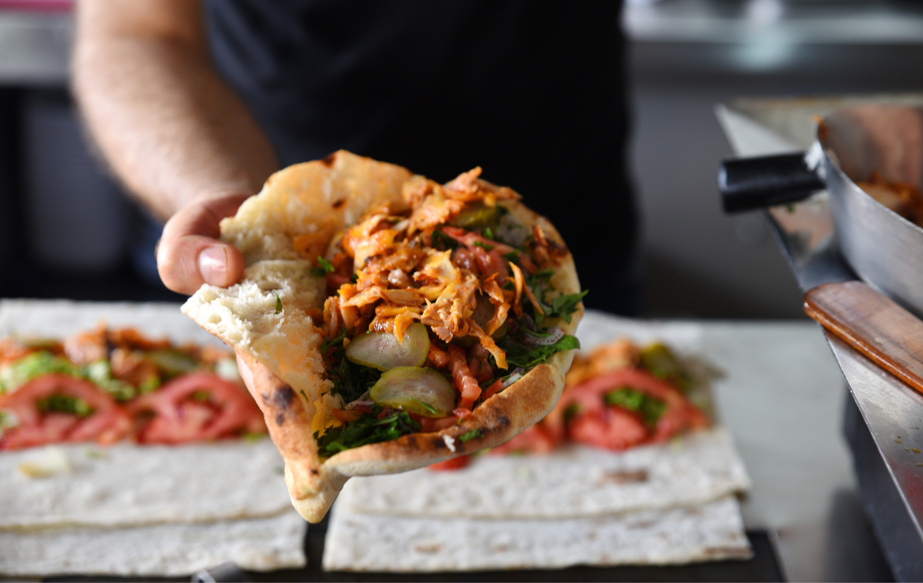 pita turecka 50 g + mięso 100 g + surówki + sos -